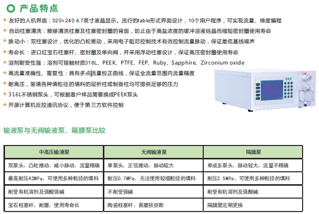 柱塞泵是目前液相色譜主流的輸液單元,特別是雙柱塞往復(fù)泵。它有一個精心設(shè)計(jì)的偏心凸輪,用同步電機(jī)或變速直流電機(jī)驅(qū)動偏心凸輪,偏心凸輪再推動兩活塞作往復(fù)運(yùn)動。偏心凸輪短半徑端所對應(yīng)的活塞向外伸,使該活塞的下單向閥打開吸入流動相,與此同時,偏心凸輪的長半徑端所對應(yīng)的另一活塞被推入,使其上單向閥打開,并將流動相送至色譜柱。具有操作方便、流速穩(wěn)定、壓力脈動小、故障率低的優(yōu)點(diǎn)。