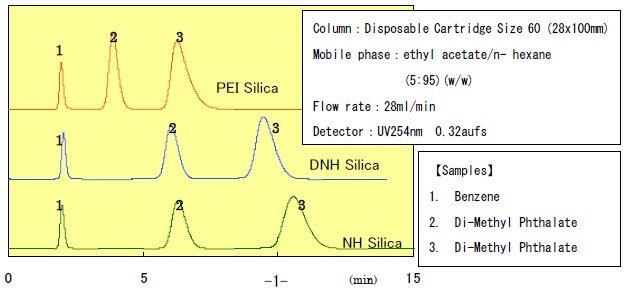 PEI硅膠鍵合的二元胺和三元胺是NH硅膠的3倍?;谶@個(gè)原因,PEI硅膠的堿度要比NH硅膠強(qiáng),并且由于碳鏈較長(zhǎng),PEI硅膠的氫鍵作用要比NH硅膠弱一些。