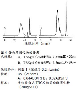 ??? 采用高性能尺寸排阻色譜法(GFC或SEC)進(jìn)行多肽分離,操作簡(jiǎn)便,不僅可用作檢測(cè)分子量的手段,還可作為純化多肽與蛋白質(zhì)分解產(chǎn)物如多肽片斷的方法之一??膳c反相色譜法(RPC)及離子交換色譜法(IEC)聯(lián)用。同時(shí),在臨床上還通過(guò)把GFC進(jìn)行比較,來(lái)推測(cè)病程的進(jìn)展。