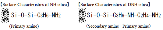 DNH硅膠鍵合的二元胺和一元胺是NH硅膠的2倍?;谶@個原因,DNH硅膠的堿度要比NH硅膠強,并且由于碳鏈較長,DNH硅膠的氫鍵作用要比NH硅膠弱一些。因此,DNH硅膠的流動相要選擇極性小的溶劑,因為DNH硅膠的洗脫速度要比普通的裸硅膠和NH硅膠快。