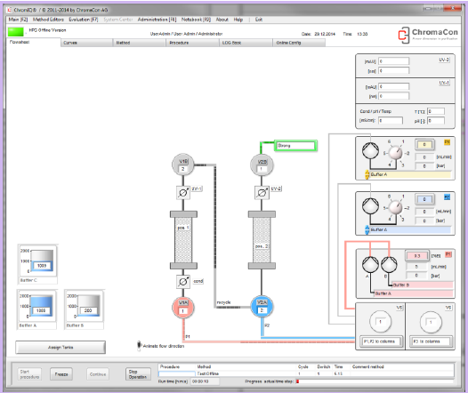 所有的Contichrom系統(tǒng)均具有完整的層析工藝運(yùn)行能力,支持多種洗脫模式,ChromIQ軟件可以提供純化向?qū)Чδ?,以支持批生產(chǎn)工藝的設(shè)計和執(zhí)行。