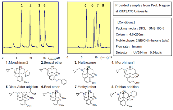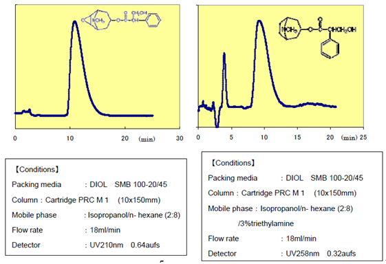 ?????? 富士公司經(jīng)過對二醇基硅膠的生產(chǎn)工藝和特性的研究,發(fā)現(xiàn)了普通硅膠在正相色譜中沒有的獨(dú)特性能。目前為止DIOL Silica已被廣泛用于分離有問題的化合物。