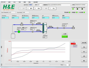2)可設(shè)置進料壓力、TMP及透過端UV報警值,超出范圍即停泵,防止目標(biāo)物損失,保證工藝可控性。