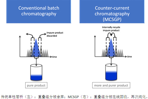 MCSGP(Multi-column Counter-current Solvent Gradient Purification)是采用雙柱進(jìn)行連續(xù)純化,可以解決單柱層析時純度和收率無法同時保障的問題。