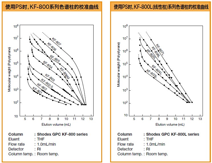 GPC KF-800系列色譜柱的校準(zhǔn)曲線(xiàn)